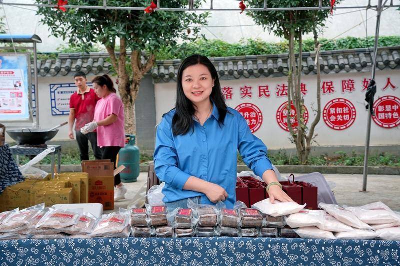 赛场外,“晒丰收”展区人头攒动。各乡镇(街道)特色农产品集中亮相,饱满谷物、鲜灵蔬果尽显本土精华,粱宴食品带来的高粱黄粑、高粱月饼、高粱粉等产品备受青睐,“早上带来的高粱粉,现在已经抢光了!”负责人张君扬介绍。游客与村民边逛边尝,在味蕾中品味丰收甜蜜。